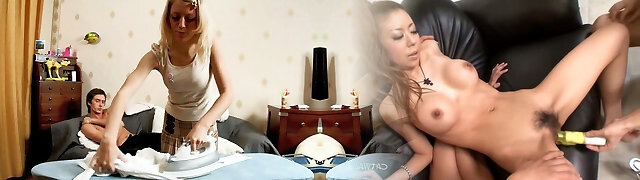 Big Tits Tight Pussy Hot Blonde Girlfriend interrupted by Big Cock Boyfriend while Ironing to get fucked hard and harsh