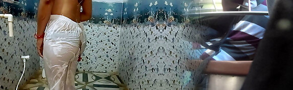 Sexy Bhabhi opened her clothes and bra and pressed her breasts vigorously and pinched her nips.