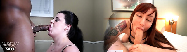 Super-hot redhead slut hungry for BBC sex enjoys slurping her acquaintance's ginormous monstercock and then asks him to destroy her pussy