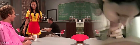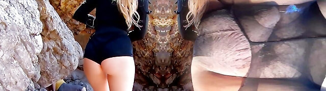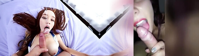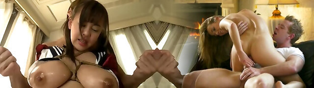 Amazingly Hot Tight Clean-shaven Pussy Babysitter without Panties in College Uniform Skirt gives a Handjob