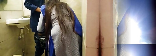 teen schoolgirl caught masturbating in the college's bathroom and her educator ended up fucking her hard