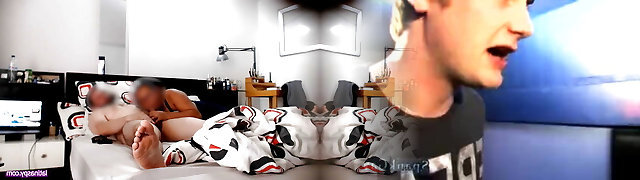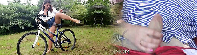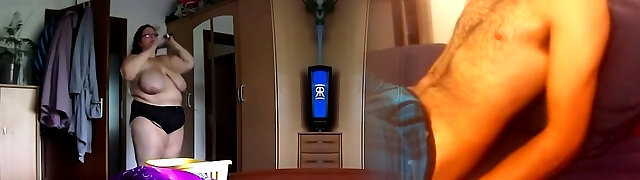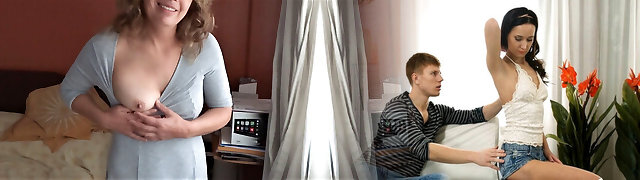 Stepmom came into my room, I'_m jerking off a dick, she looks and gets excited a sweetheart takes out her big natural tits and starts stroking her nips