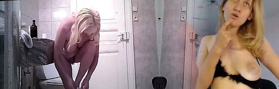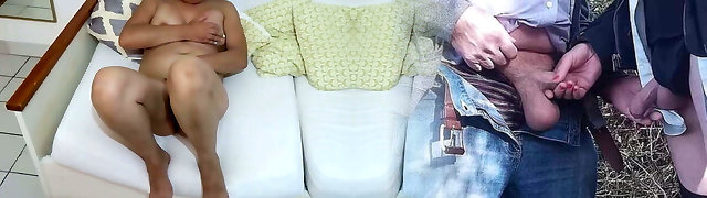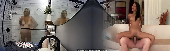 I'_m taking a risk.. how will my stepmom react? I flash my big dick and begin draining off, my sis and make repairs in the next room
